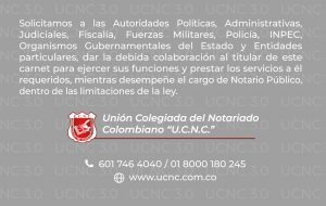 Señor Notario: Envíe un oficio dirigido al Presidente de la UCNC a través del correo electrónico presidencia@ucnc.com.co