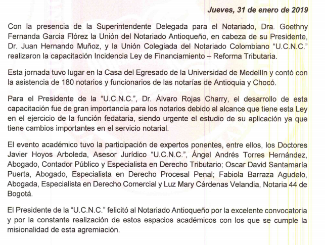 Notarios de Antioquia y Chocó se capacitaron sobre Ley de Financiamiento.