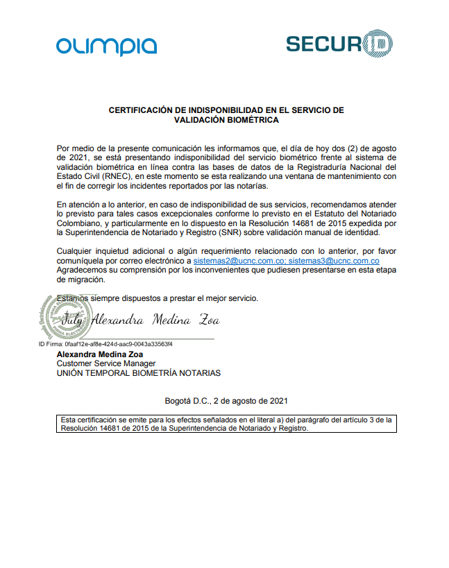 Política tratamiento de datos Sistema Autenticación Biométrica