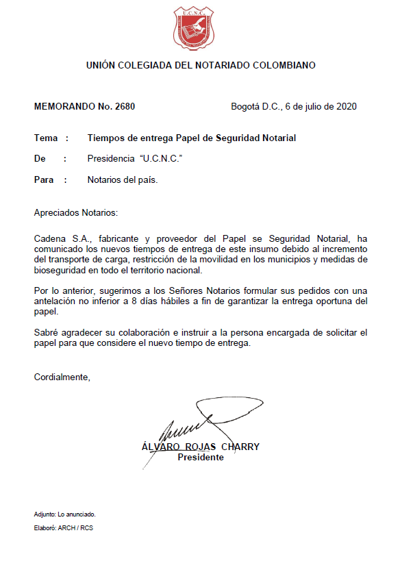 Notarios del país. Tiempo de entrega Papel de Seguridad Notarial