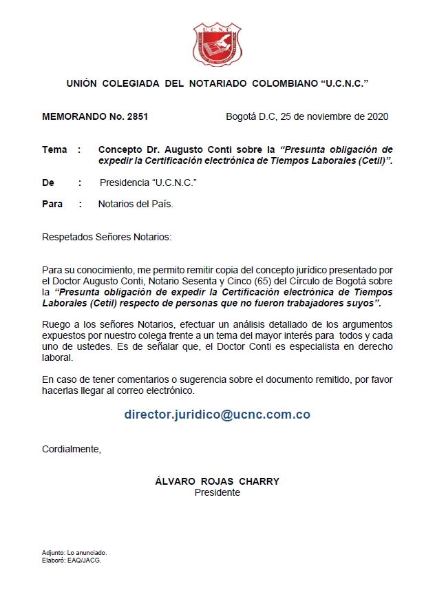 Concepto Dr. Augusto Conti sobre la Presunta obligación de expedir la Certificación electrónica de Tiempos Laborales Cetil Memorando N° 2851Descargar AnexoDescargar