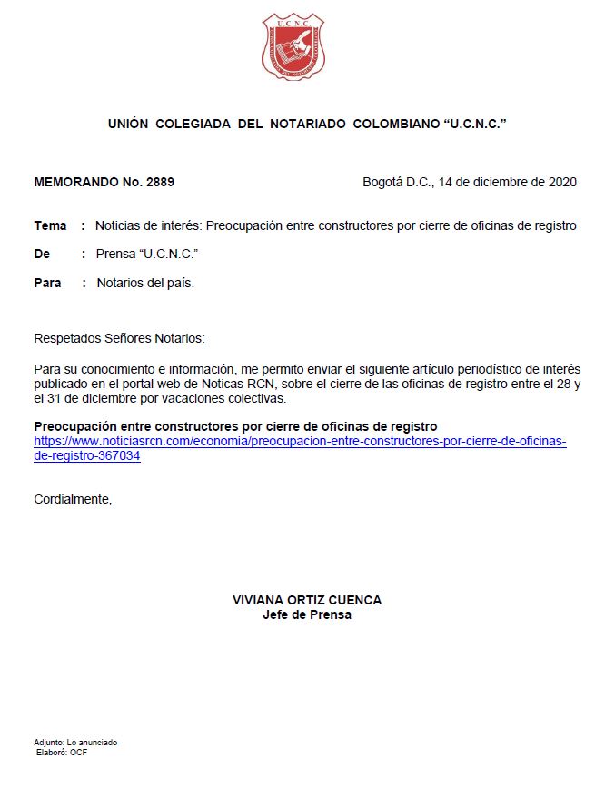 Noticias de interés – Preocupación entre constructores por cierre de oficinas de registro. Memorando N° 2889Descargar