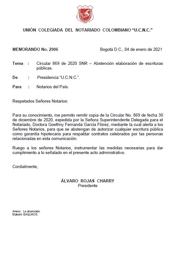 Circular 869 de 2020 SNR – Abstención elaboración de escrituras públicas