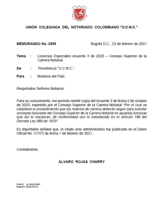 Licencias Especiales Acuerdo 3 de 2020 – Consejo Superior de la Carrera Notarial. Memorando N° 2959 Descargar