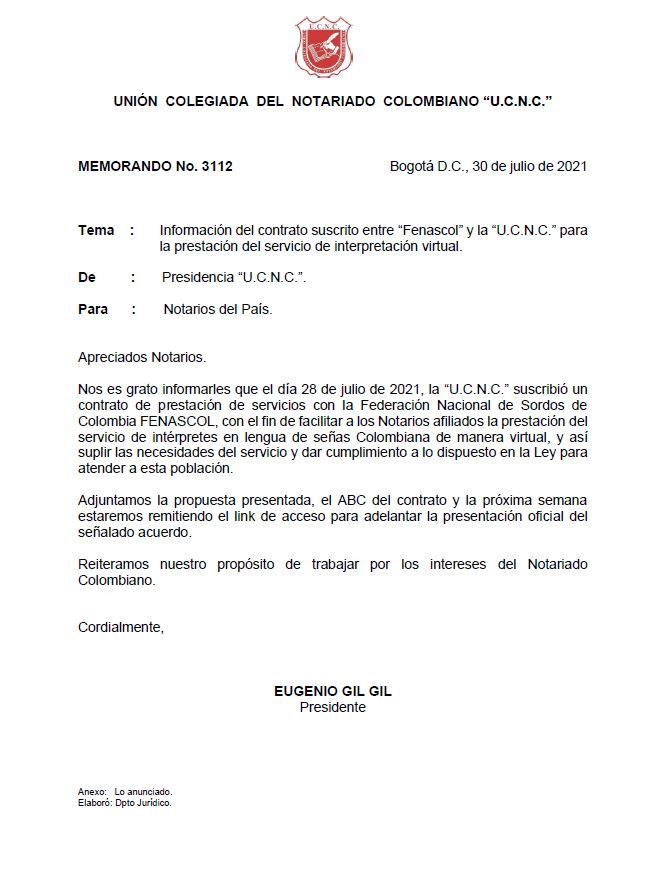 Contrato suscrito entre Fenascol y la U.C.N.C.