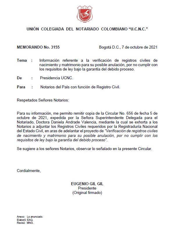 Información sobre registros civiles de nacimiento y matrimonio para anulación. Memorando 3155Descargar