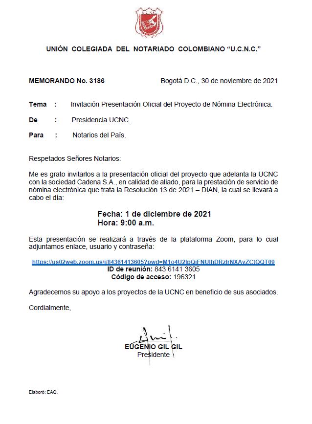 Invitación presentación oficial del Proyecto de Nómina Electrónica.