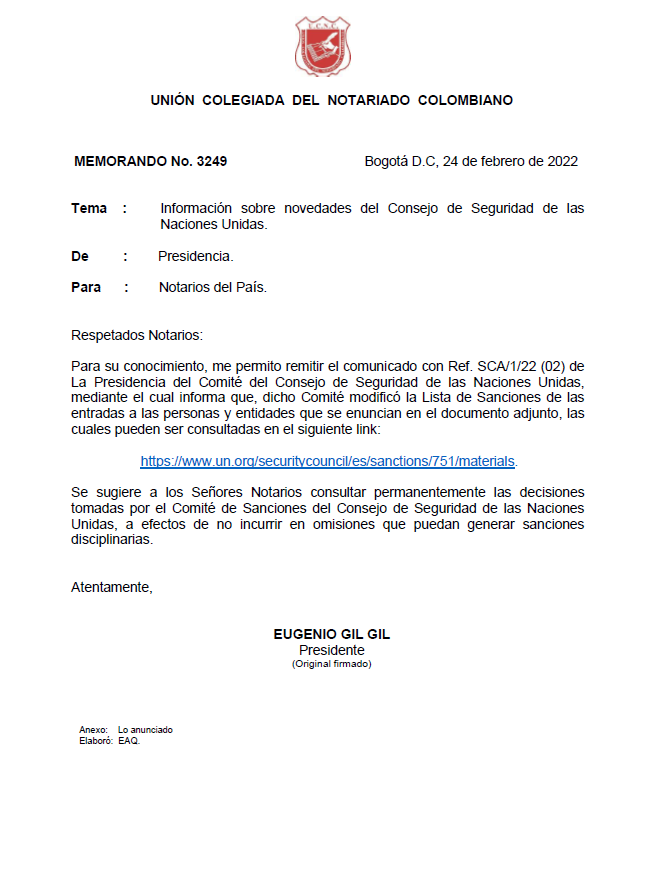 Listado de Resoluciones de las Notarías expedido por la SNR