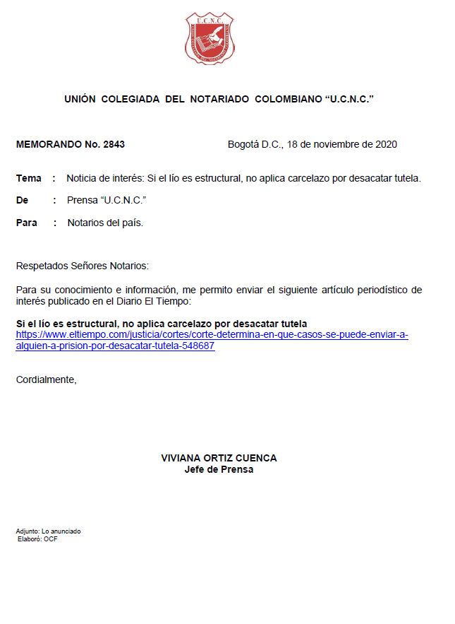 Noticia de interés – Si el lío es estructural, no aplica carcelazo por desacatar tutela. Memorando N° 2843Descargar