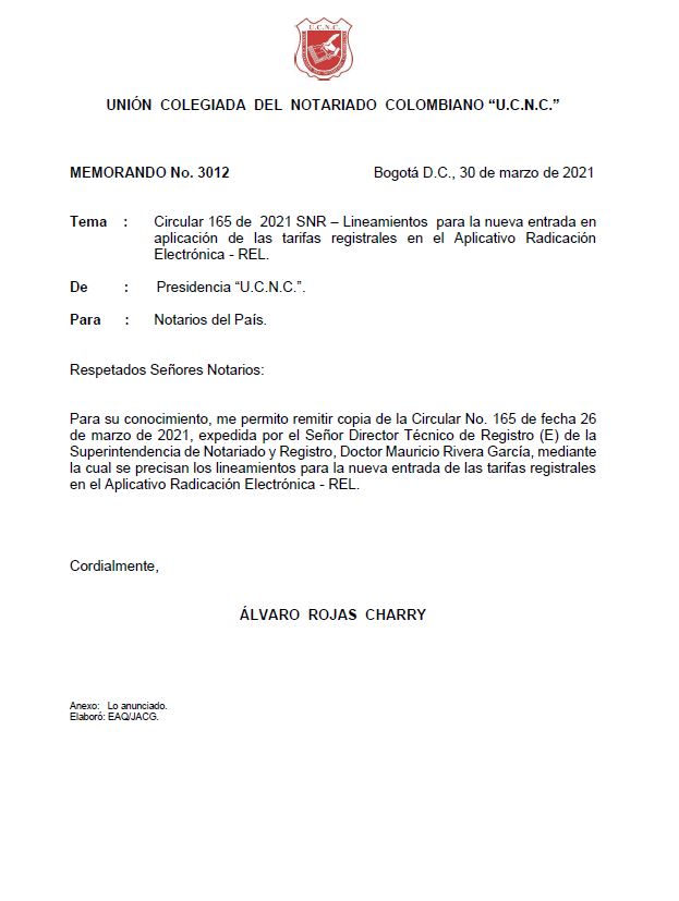 Circular 165 de 2021 SNR – Lineamientos para la nueva entrada en aplicación de las tarifas registrales en el Aplicativo Radicación Electrónica – REL. Memorando N° 3012Descargar