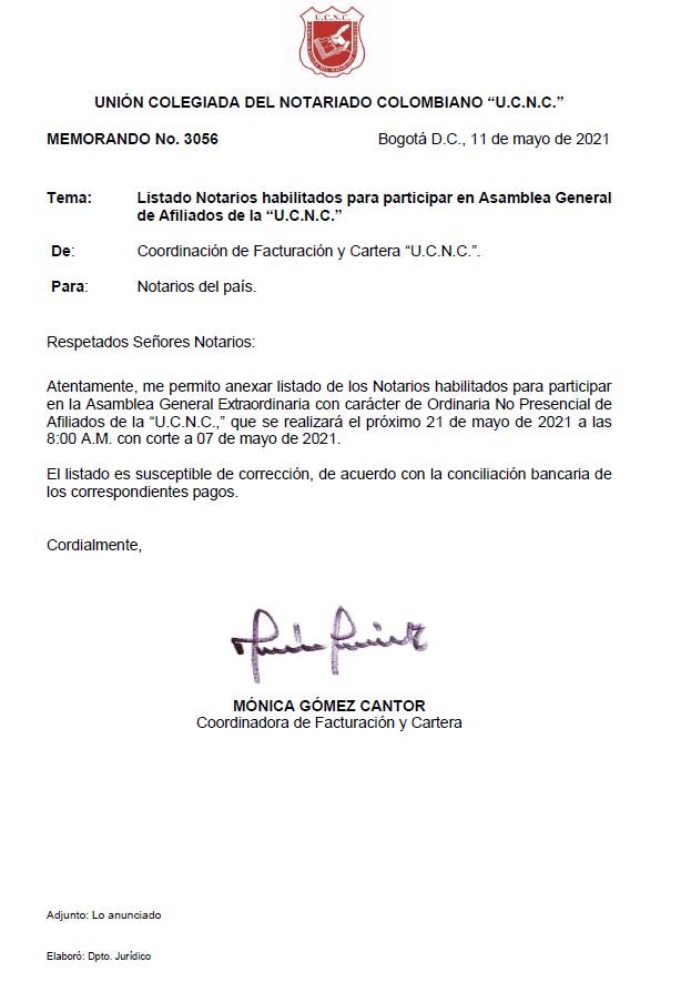 Listado de Notarios habilitados para participar en la Asamblea General de Afiliados. Memorando N° 3056Descargar