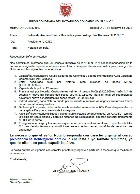 Póliza de Amparo Daños Materiales para proteger las Notarías U.C.N.C..